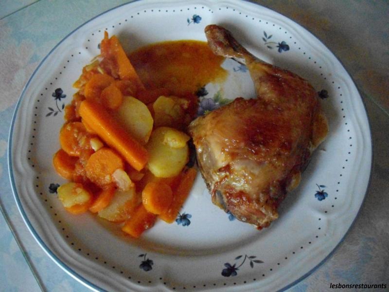 J'ai servi les carottes au curry avec des cuisses de poulet.