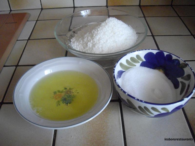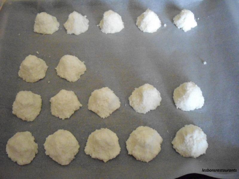 | Macarons, rochers ou congolais...j'ai voulu essayer la recette que Françoise m'a gentiment laissé sur la recette "macarons à la noix de coco" de ce blog (voir la recette sur ce lien). Aujourd'hui, je cuisine les "p'tits rochers" de Françoise. Je rappelle les ingrédients pour cette recette: Battez les blancs en neige bien ferme. Incorporez délicatement le sucre et la noix de coco. Mettez une feuille de papier sulfurisée sur une plaque allant au four et faites des petits tas. Cuire 25 minutes  four 160° jusqu'à ce que les "p'tits rochers" prennent une jolie couleur dorée. Laissez refroidir puis déguster. Bon appétit! Merci Françoise pour cette excellente recette. Les macarons sont moelleux à coeur, croustillant à souhait. Le thé est prêt, mais il n'y a plus de macarons... Vous pouvez retrouver d'autres recettes de petits gâteaux sur ce lien. Vous pouvez retrouver d'autres idées desserts sur ce lien.