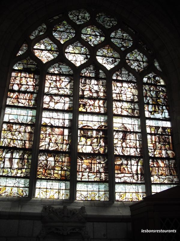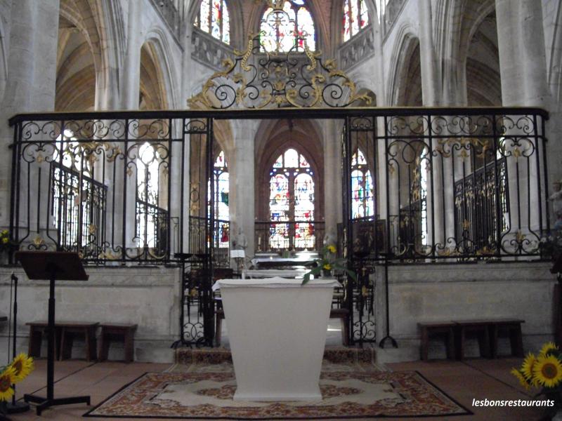 La grille qui entoure le choeur est en fer forgé Louis XV. Les vitraux sont remarquables.