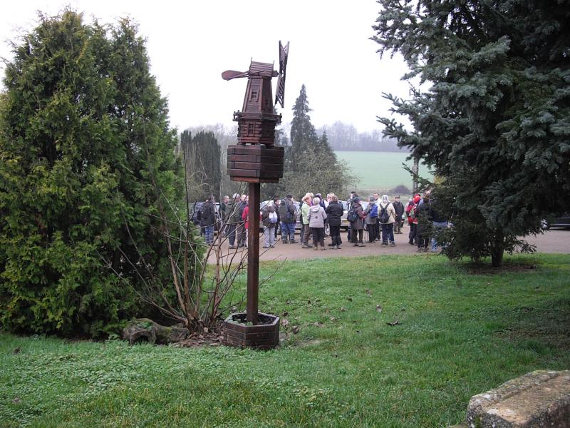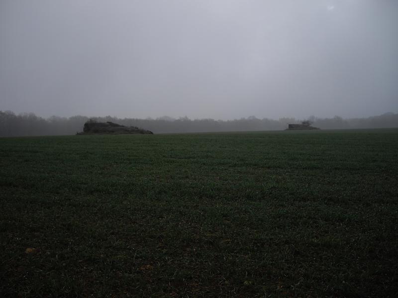 | Pour cette sortie avec l'ANR, nous avions rendez-vous sur le parking de la ferme-auberge "Chantereine" à Verneville (voir le lien). Vernéville est une commune située dans le département de la Moselle. Fief de l'évêché de Metz, Verneville dépendait de l'ancien Val de Metz et possédait une seigneurie avec un château fort. Alors que tout ce petit monde s'assemble, nous nous amusons avec le chien de la ferme. Le signal du départ retentit et, déjà, dans la brume du matin, les rencontres sont sympathiques. Cette forêt de sapin ne laisse pas passer le brouillard... Quelques petites fleurs résistent encore à ce temps automnal et nous accueillent avec gentillesse. Le village apparaît au loin comme dans un rêve. Les silhouettes se détachent sur le chemin rocailleux....Certains sont pressés d'arriver. Nous sommes sur un site où la guerre de 1870 fit de nombreuses victimes. Tout au long de notre promenade, des monuments sont là pour nous le rappeler. La balade sur le plateau nous fait traverser des champs cultivés. Nous passons devant un centre équestre. Les chevaux n'ont pas l'air de craindre le froid et sont attentifs à ces visiteurs. Dans les champs, des lignes de bunkers construits face à l'ennemi n'attendent plus rien de l'avenir.... Ce nid déserté, encore tout chaud de la présence d'oisillons, attend lui aussi le retour des beaux jours... Merci Bernard pour cette balade au coeur de notre région.