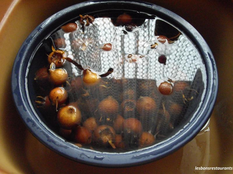 Les gelées ont débuté, il y a maintenant quelques jours et la récolte des nèfles également. Elle se poursuit toujours et, deux fois par semaine je vais cueillir mes nèfles pour en réaliser des confitures ou des gelées. Aujourd'hui, je cuisine la gelée de nèfles. Bien laver les nèfles.