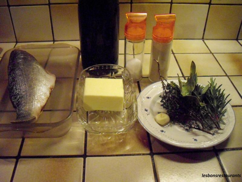 -1 bar -1/2 litre de vin rouge -50g de beurre -ail, bouquet garni,sel, poivre Pelez et écrasez l'ail avec le dos d'une fourchette.