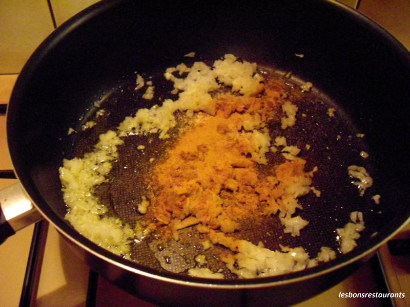 -3 poivrons -1 verre de bouillon de volaille -huile d'olive -1 oignon -1 gousse d'ail -sel, poivre, persil-gingembre, curcuma, coriandre... -200g de pâtes cuites -tomates pelées -fromage râpé Faites revenir l'oignon et l'ail émincés dans un filet d'huile d'olive.