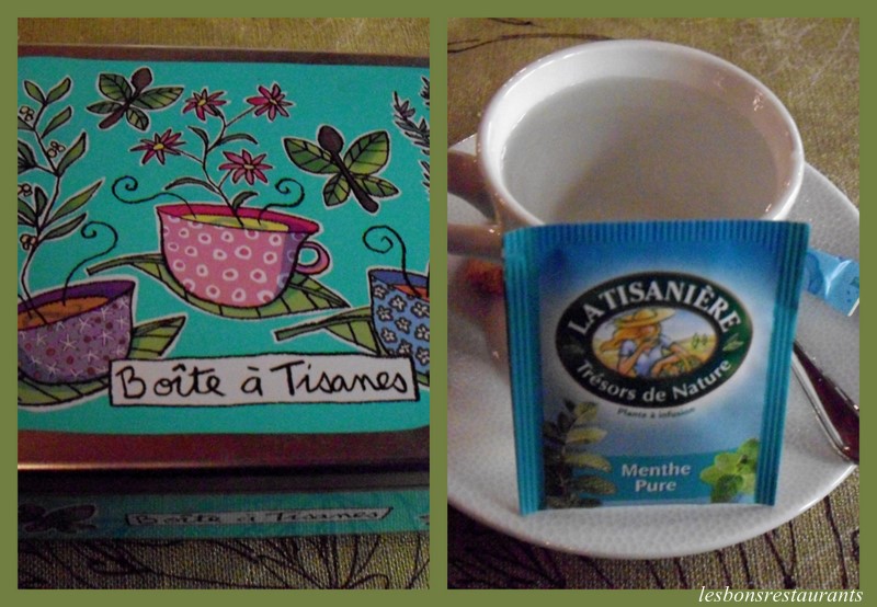 Pour finir, à la place du traditionnel café, j'ai commandé une tisane...J'ai pu choisir dans une belle boîte à tisanes une boisson à la menthe.
