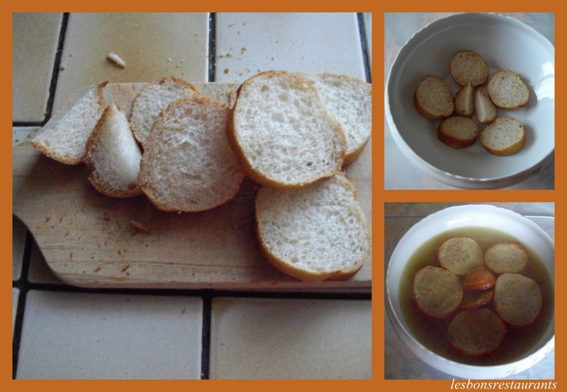 Au moment de servir, coupez des tranches de pain que vous mettez dans une soupière.
