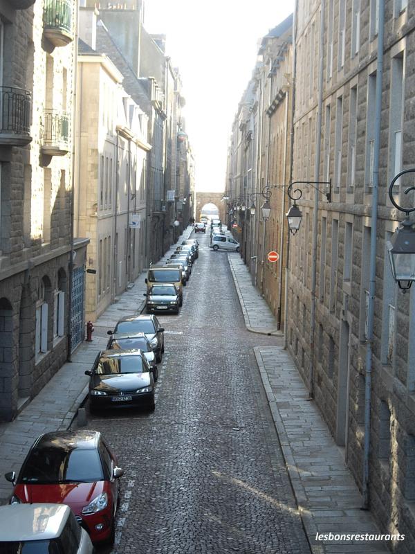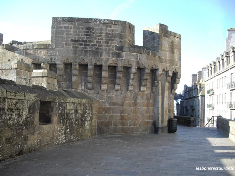 Depuis le chemin de ronde, la vue s'étend sur la Grand'Rue. Les remparts bordent les maisons des riches armateurs malouins.