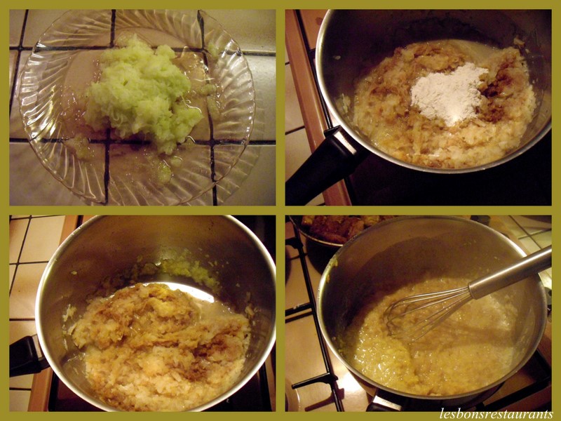 Pendant ce temps, pelez, lavez et râpez la pomme et l'oignon.