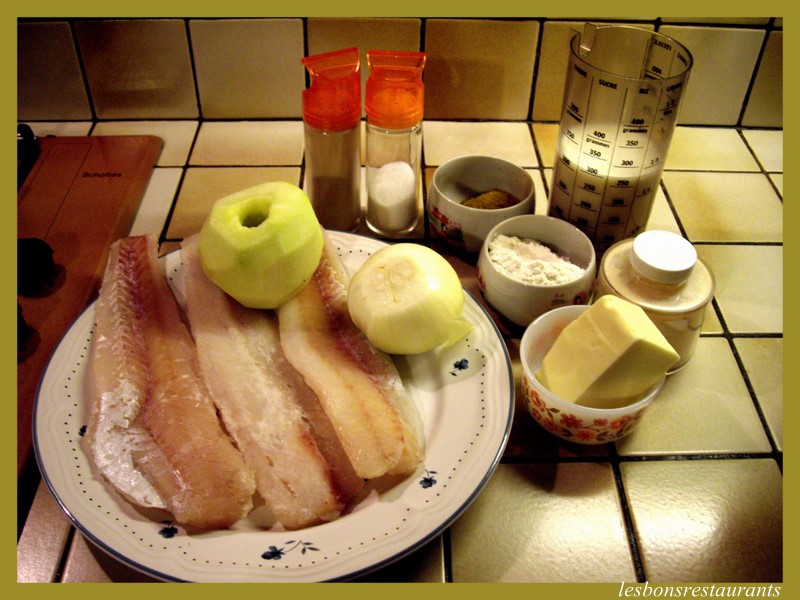 Aujourd'hui, je cuisine les filets de colin aux pommes.