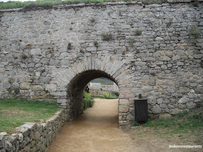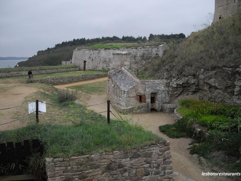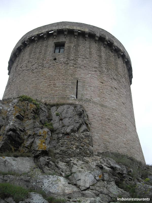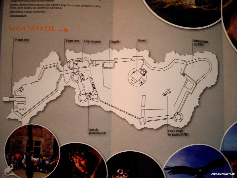 Imaginez un château fort du XIVème siècle bâti au sommet d'une falaise, entouré d'une lande sauvage d'un côté, de la mer de l'autre, et protégé par deux crevasses naturelles de 60 mètres de haut, franchissables uniquement par deux pont-levis. Sur le plan, nous sommes dans la cour où se situe le donjon. Cliquez pour agrandir les photos. La légende raconte que l’ancêtre du fort était un simple donjon en bois, édifié en 931 par un membre de la famille Goyon pour surveiller les mouvements des normands.