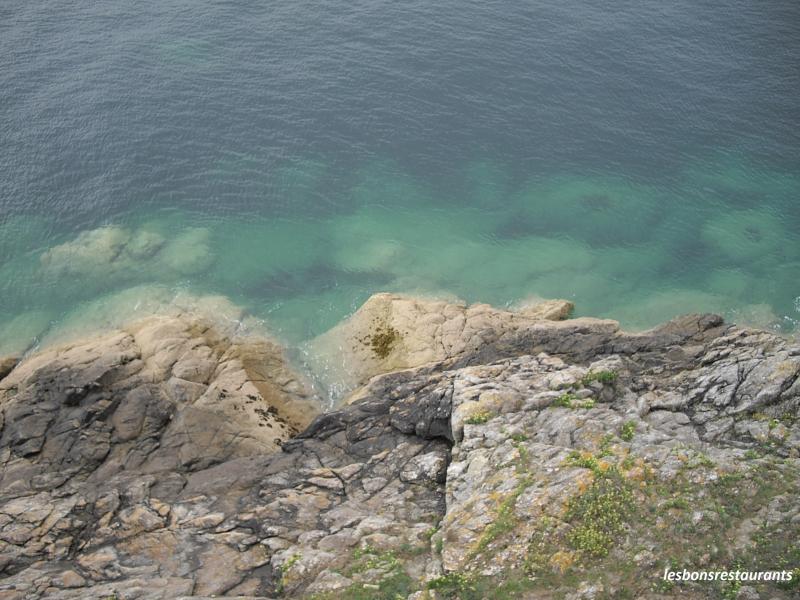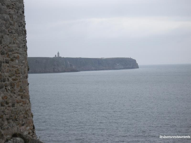 Au loin se dessinent, les deux phares du Cap Frehel (voir le lien).