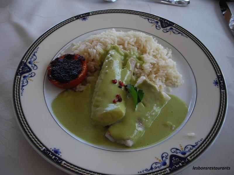 Un filet de colin et sa sauce aux petits pois accompagné de riz créole.