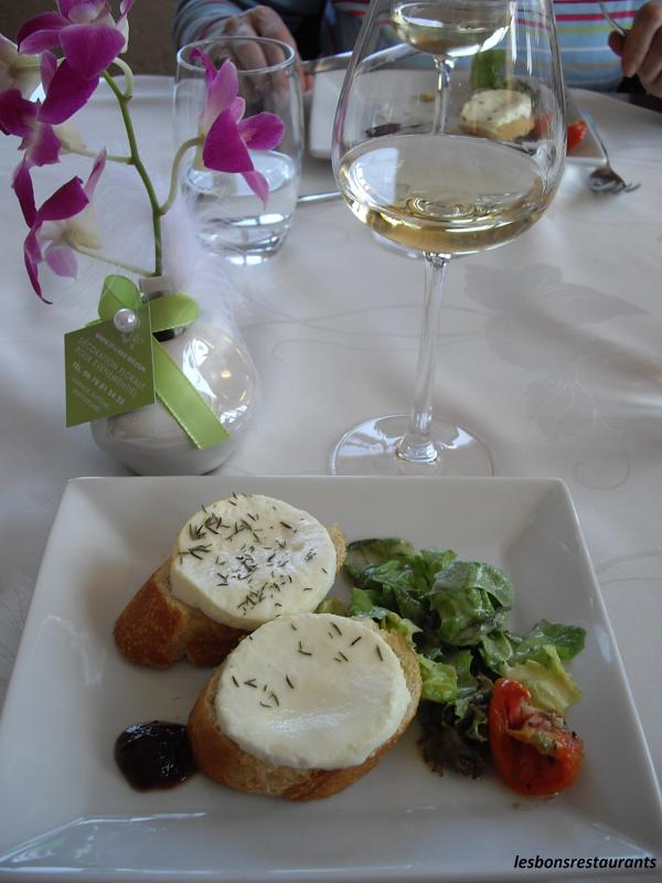 L'entrée est constituée de deux toasts de chèvre chaud.