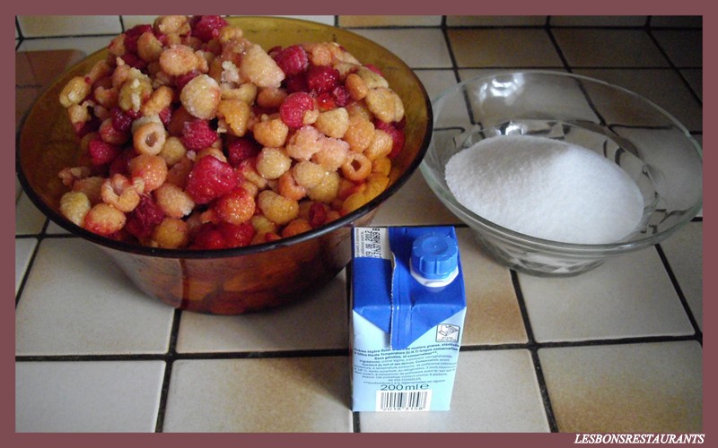 -1kg de framboises -300g de sucre -1 brique de crème fraîche