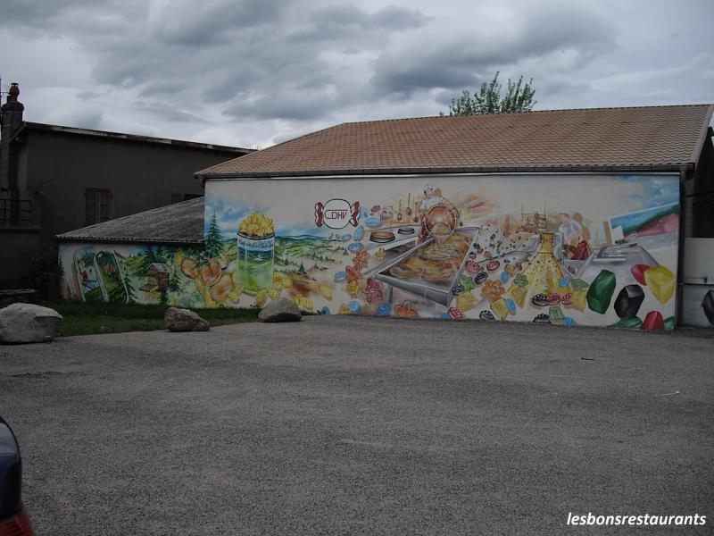 Plainfaing est une commune située dans le département des Vosges en région Lorraine. Située au pied du col du Bonhomme, Plainfaing se trouve sur notre route lorsque nous allons en Alsace. Place de l'église, deux belles peintures murales ornent le mur donnant sur le parking. La première peinture est la représentation des bonbons très célèbres sur la commune. En effet, Plainfaing est le siège de la Confiserie des Hautes-Vosges, entreprise artisanale repris en 1986 par la famille Claudepierre et spécialisée dans la fabrication de près de 35 sortes de bonbons à base d’arômes naturels ou d'huiles essentielles. L'entreprise produit en moyenne 250 tonnes de bonbons par an. Cliquez sur les photos pour les agrandir! Cette deuxième fresque est signée Antoine Brellmann. Ce sont des cartes postales représentant la vie de la région.