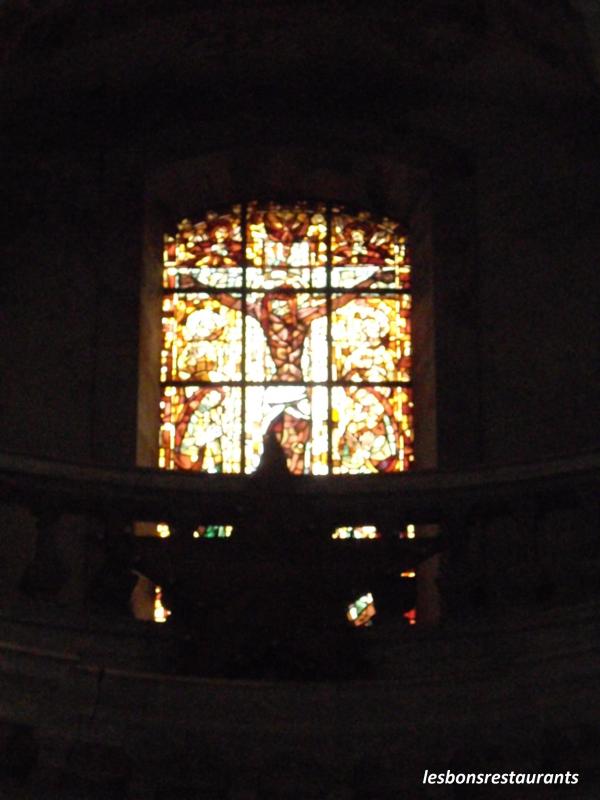 Au dessus du choeur, presque sous le toit, se cache un très beau vitrail!