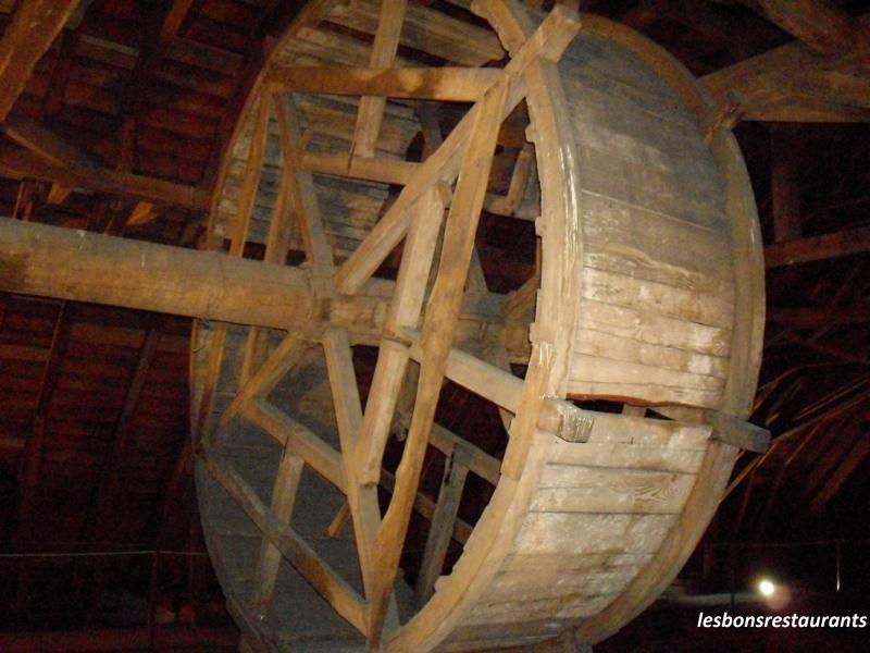 La roue qui servait à l'élévation des éléments de construction est encore présente et a servi lors de la dernière rénovation. Ces éléments étaient tous numérotés.