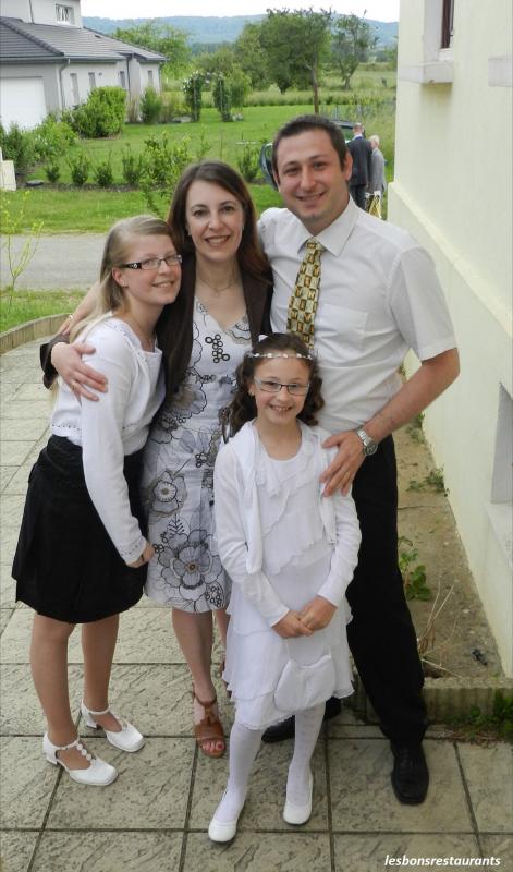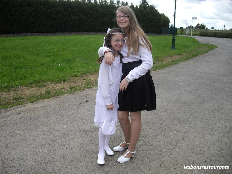 Dis! Regarde! J'ai une mèche rebelle! Enfin! Dépêches-toi! Nous allons être en retard! Une seconde, je mets mes chaussures.... Mais que se passe-t-il chez Marc et Sylvie? Nous avons eu l'immense joie d'aller, dimanche, à la communion d'Anaïs. Vous connaissez, Anaïs? Souvenez-vous! Nous avions été à la communion de sa soeur, Tiphaine (voir le lien).