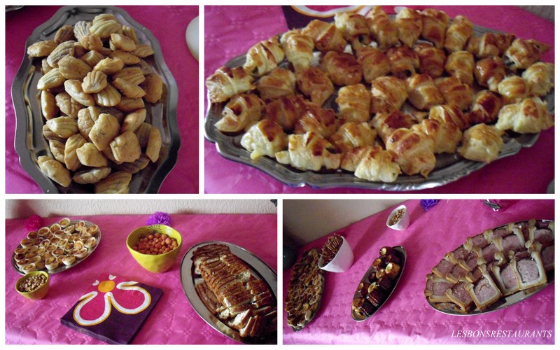 Des petites Madeleine aux olives...des mini-croissants au jambon et asperges et saumon...des quiches......