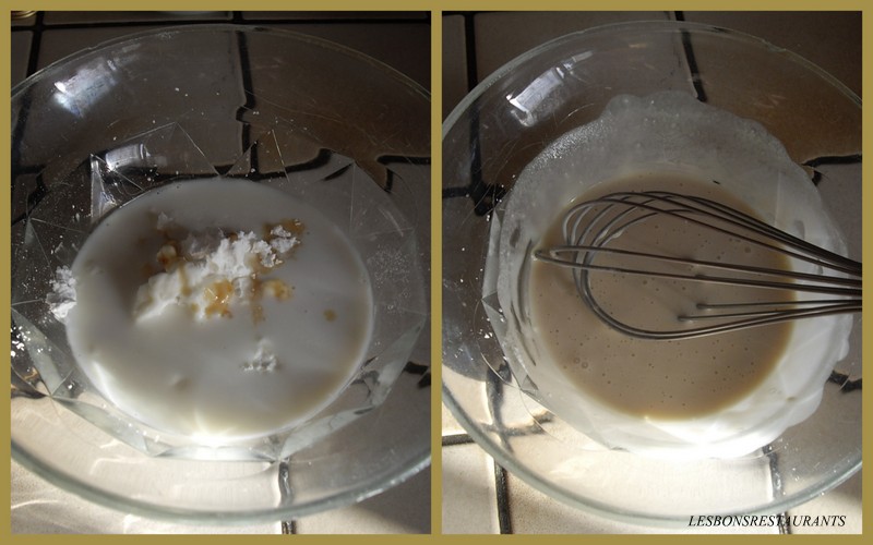 Dans un saladier, mélangez la farine, la maïzena et 5 càs de lait.