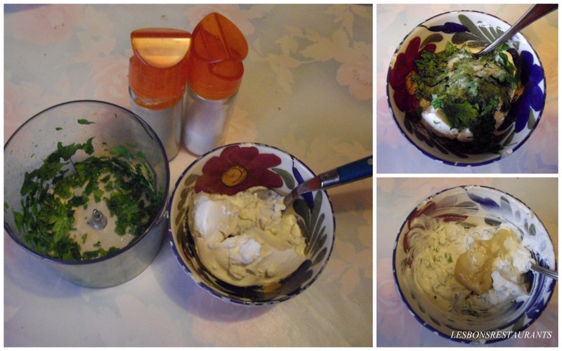 Mélangez-le à la ricotta. Salez et poivrez. Puis ajoutez la moutarde. Mélangez soigneusement.