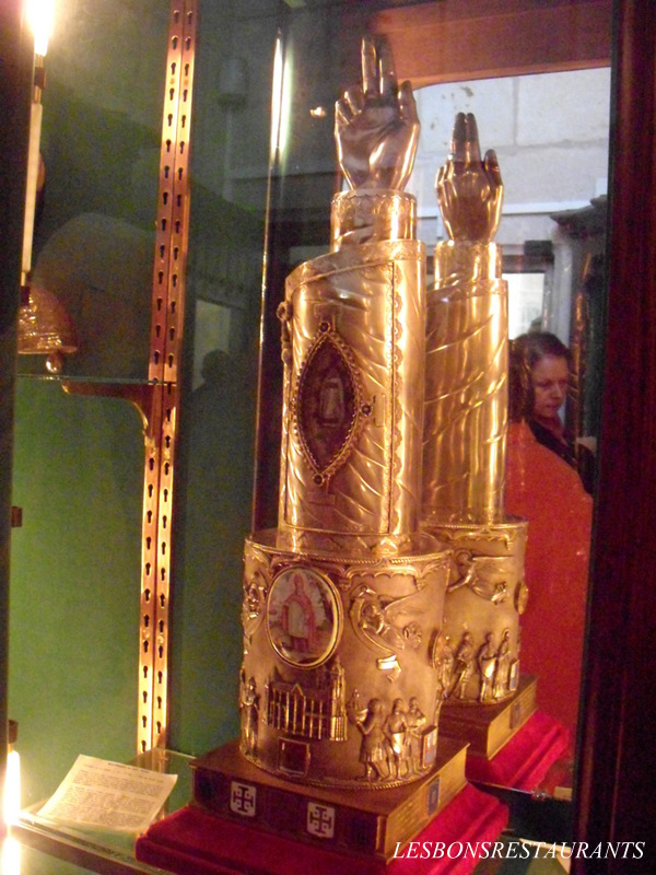 À l'intérieur de la chapelle, nous découvrons le bras reliquaire en or qui abrite une relique de Saint-Nicolas, sa phalange « dextre bénissante ».