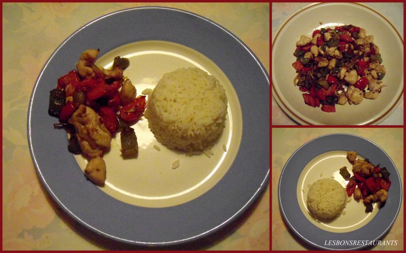 J'ai servi mes filets de volaille aux poivrons avec du riz blanc.