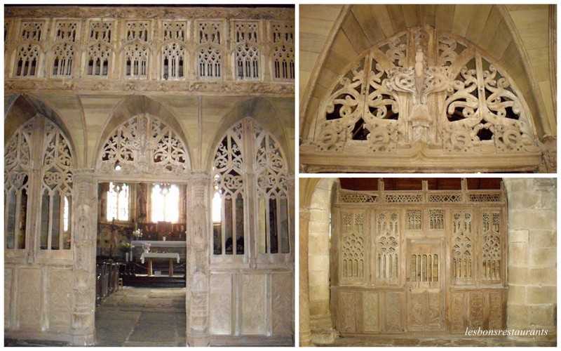 Vous êtes prêt pour la suite du voyage? Alors, entrons! Cliquez sur les photos pour les agrandir! Lorsque l'on entre dans l'église on remarque un très beau Jubé du 16e siècle aux arcades flamboyantes et finement sculptées.