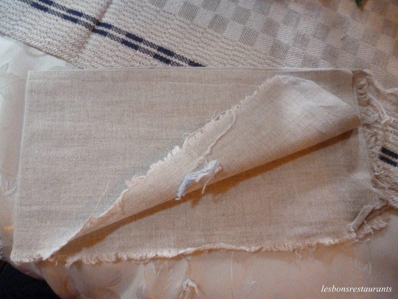 Sur la nappe blanche, il était de mise de disposer un grand tissus de lin afin que chaque invité puisse s'essuyer les mains.