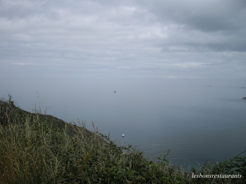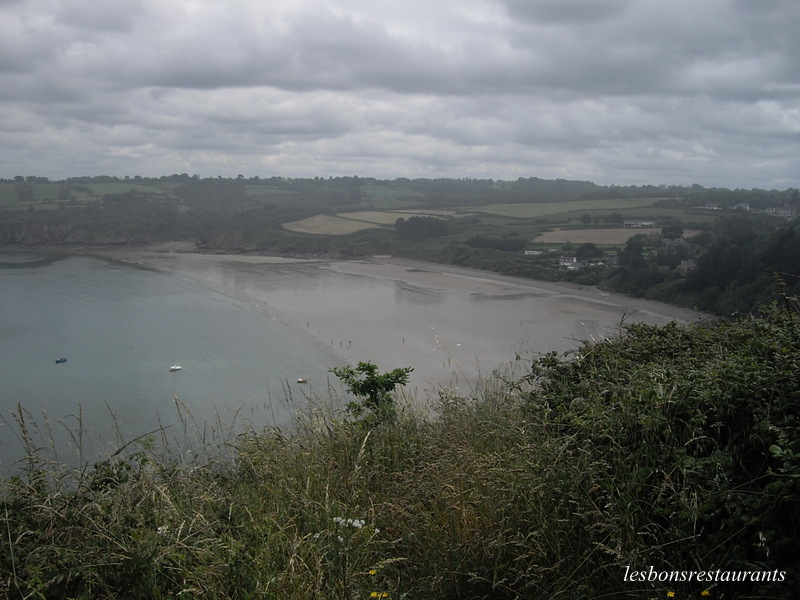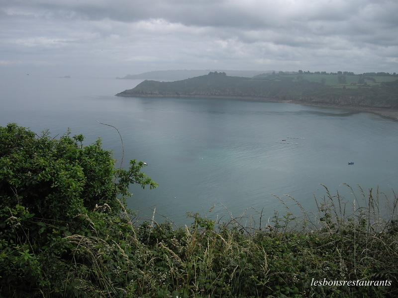 En bas de la falaise se situe le port et la plage de Bréhec.