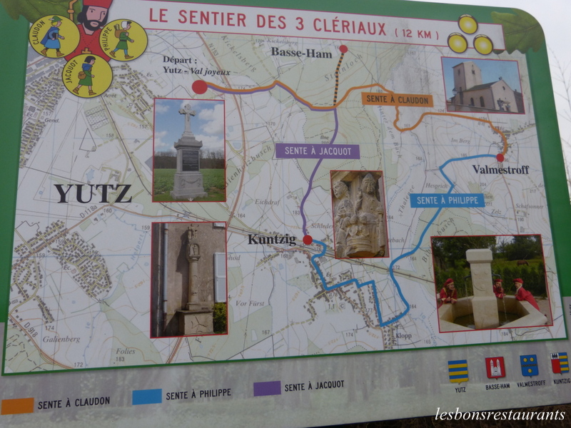 Nous avions rendez-vous avec le Club Vosgien sur le parking de la gare. Pour cette balade, nous avons suivi une partie du sentier des trois clériaux. Ce sentier pédestre de 12 kilomètres constitue une boucle entre les communes de Yutz, Kuntzig et Valmestroff. Mais qui sont les trois clériaux?