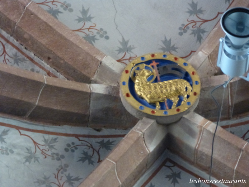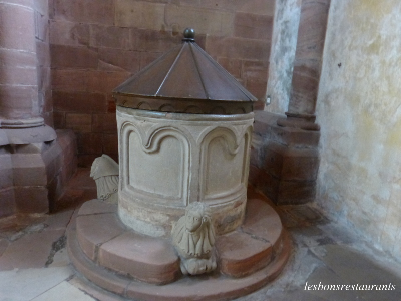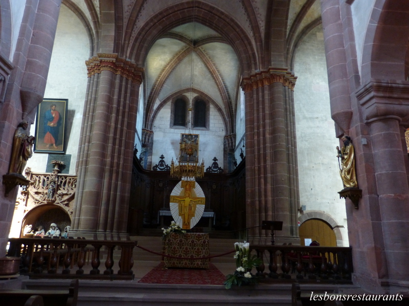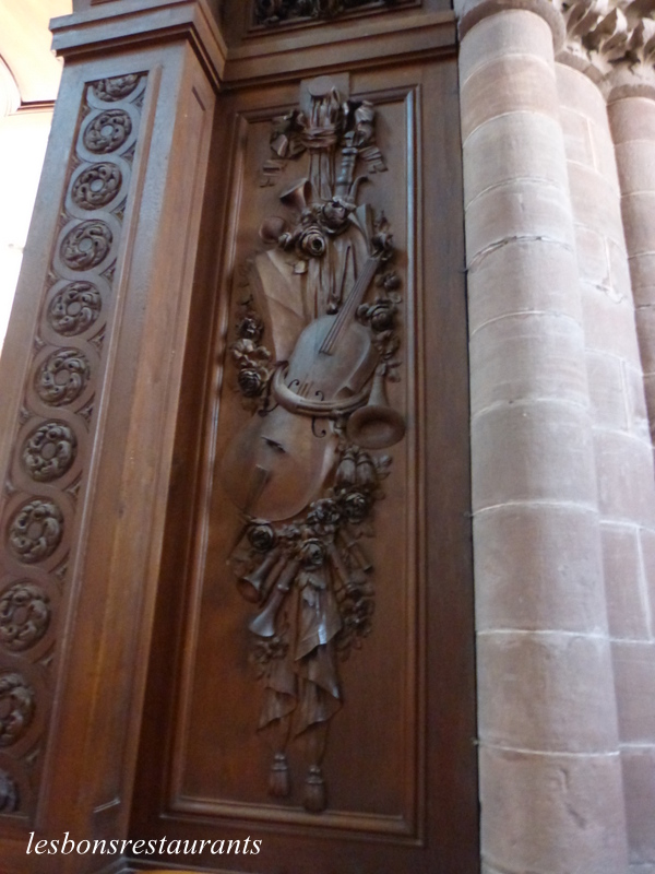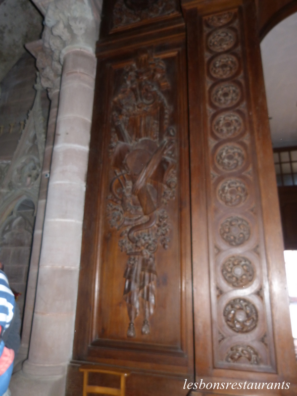 Ce petit village possède une très jolie abbatiale. Vous vous souvenez, hier, vous nous aviez aidé à pousser les portes de l'église? Vous pouvez revoir cette balade depuis le début en cliquant sur ce lien. La porte d'entrée est entourée d'un superbe entourage en bois sculpté.