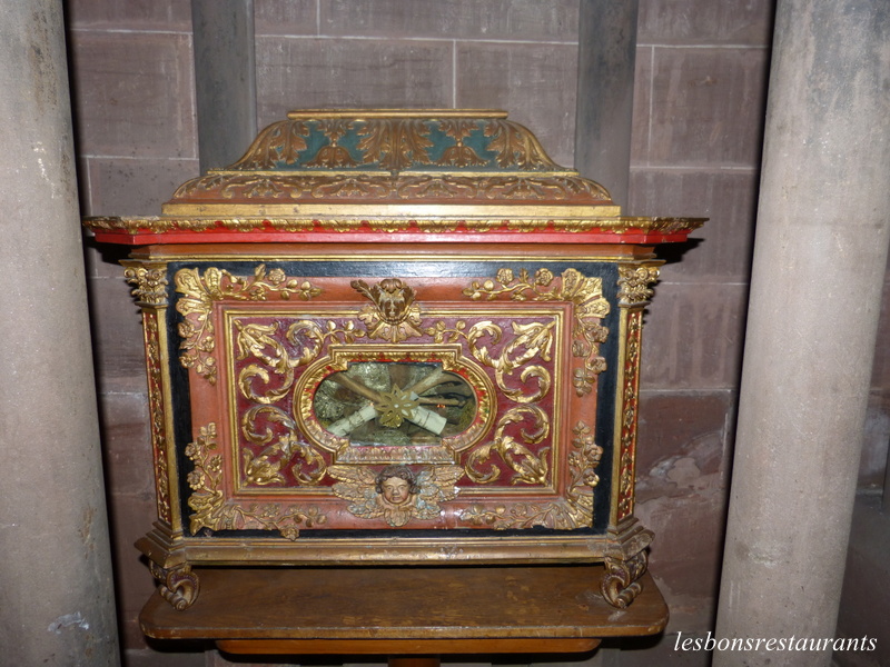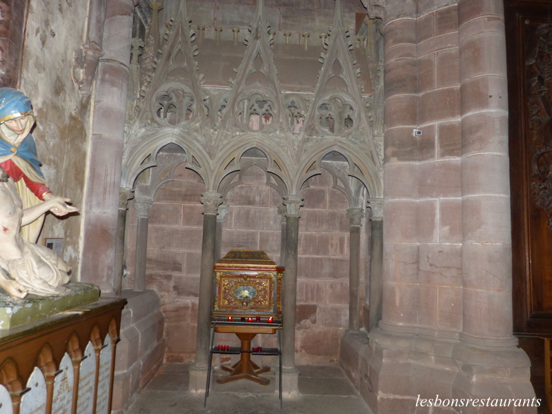 Ce reliquaire se trouvait dans la chapelle Saint-Adelphe qui se trouve juste à côté de l'Abbatiale et qui est, aujourd'hui, protestante.