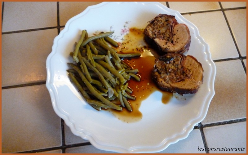 J'ai servi mon filet mignon de porc farci au noilly pratt avec des haricots verts.