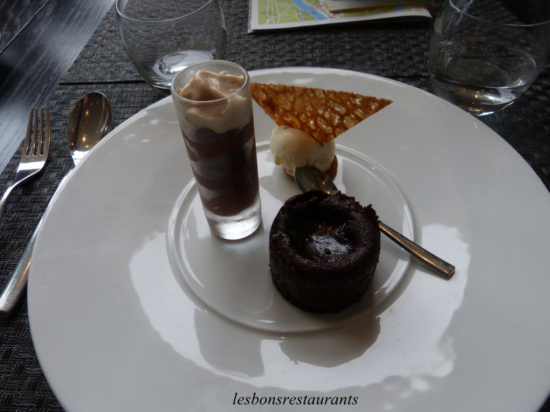 Pour les plus gourmands...un moelleux ainsi qu'une mousse au chocolat, une glace fromage-blanc vanille accompagnée d'une tuile croustillante.