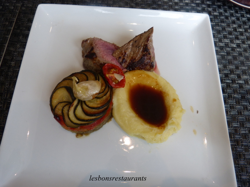 Pour la suite du repas nous avions le choix entre un pavé de rumsteck à la plancha servi avec un tian de légumes ratatouille et de l'aligot....
