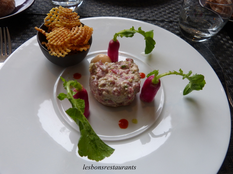 Pour ma part, j'ai préféré le tartare de boeuf coupé au couteau préparé avec des condiments et servi avec des radis roses croquants, des sablés et un peu de wasabi.