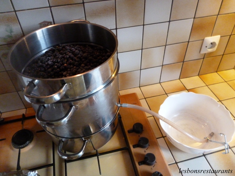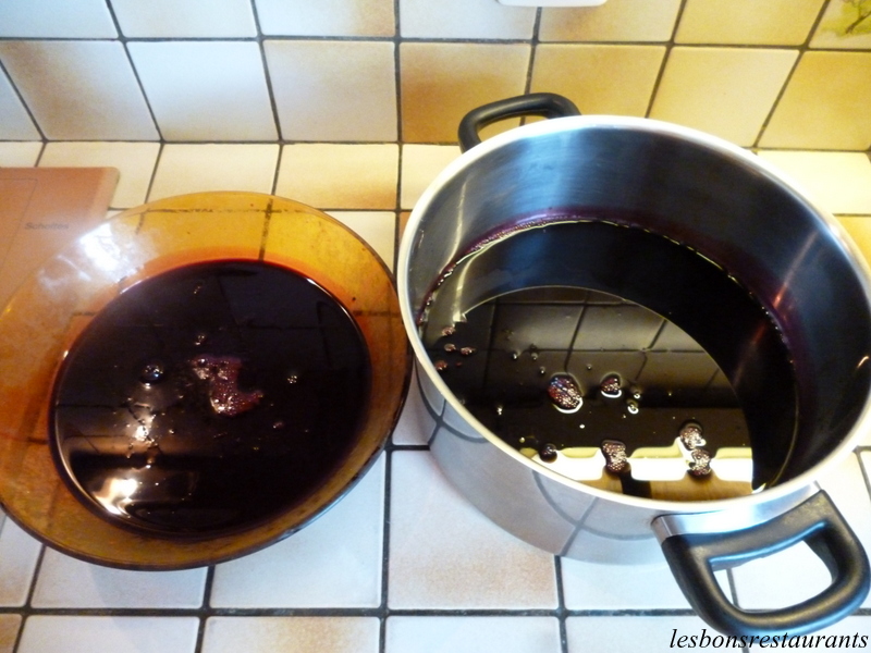 | Je vous disais que nous allions réaliser de délicieuses confitures et gelées de fruits.... Nous allons poursuivre la saison des confitures par une délicieuse gelée de cassis. Le cassis a toujours eu la réputation d'avoir des effets bénéfiques sur la santé! On utilise, notamment, les feuilles en infusions pour lutter contre les rhumatismes. Mais, ne serait-ce que pour le plaisir.... Aujourd'hui, je cuisine, la gelée de cassis. Mon extracteur de jus, cet appareil qui permet d'extraire le jus des fruits afin d'en réaliser des gelées, des coulis....n'est pas bien loin, en ce moment! (voir le lien sur mon article consacré à l'extracteur de jus). Grâce à un système de vapeur le jus s'écoule doucement et au bout de 2 à 3 heures vous obtenez un excellent nectar qui vous permettra de réaliser de vraies douceurs! Lavez et égouttez les fruits. Mettez-les dans l'extracteur de jus et laissez le jus s'écouler pendant 2 à 3 heures. Une fois le jus écoulé, vous le filtrez, afin d'éliminer les petits grains qui auraient pu passer à travers les mailles du filets. En fonction du jus obtenu, vous pesez le sucre. Puis, vous pressez le citron. Mais la base de ma recette de gelée de mûres est: -1 kg de jus de cassis -800g de sucre -le jus d'un citron Les ingrédients pour cette gelée sont prêts....Vous pouvez commencer! Commencez par laver et stériliser les pots de confitures. Ma petite astuce! Versez le jus dans votre marmite à confiture et portez à ébullition. Laissez cuire le jus à petits bouillons pendant 10 minutes afin d'éliminer le trop plein d'eau. Ensuite, versez le sucre et le jus de citron. Remuez et laissez reprendre le petit bouillon. À partir de ce moment vous laissez cuire votre gelée tout en la remuant et en la surveillant. Au bout de 10 à 15 minutes vous vérifiez la nappe. Dès que votre confiture se fige, vous la mettez en pots et vous fermez les pots. Vous laissez refroidir les pots. Vous collez une belle étiquette et vous garnissez vos pots d'un joli tissu et d'un beau ruban! Bonne dégustation! Vous pouvez retrouver d'autres idées gelées et confitures sur ce lien.