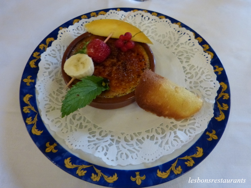 Le dessert est constitué d'une crème de mangue et banane brûlée à la cassonade.