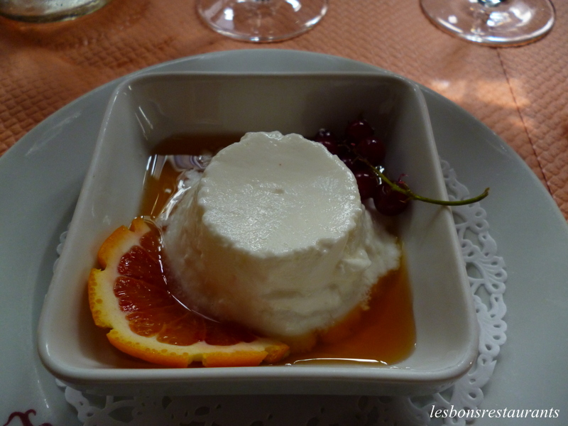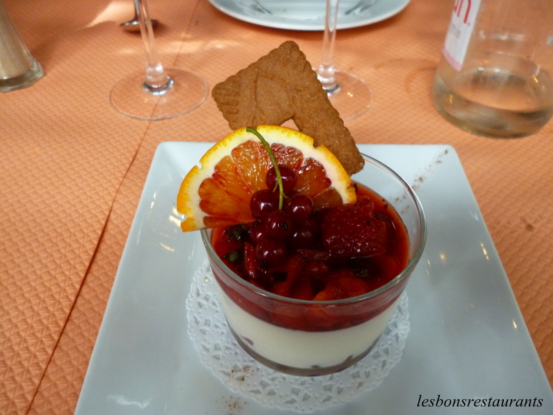 Lorsque arrive le moment du dessert, je savoure une panna cotta aux fruits rouges.