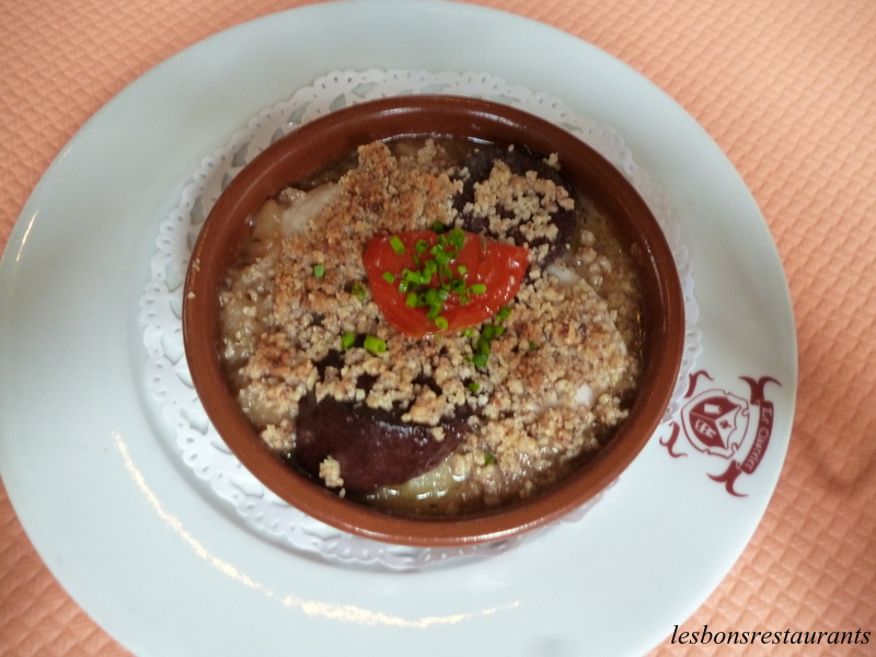En entrée, le crumble aux deux boudins accompagné de poires et d'oignons rouges me séduit.