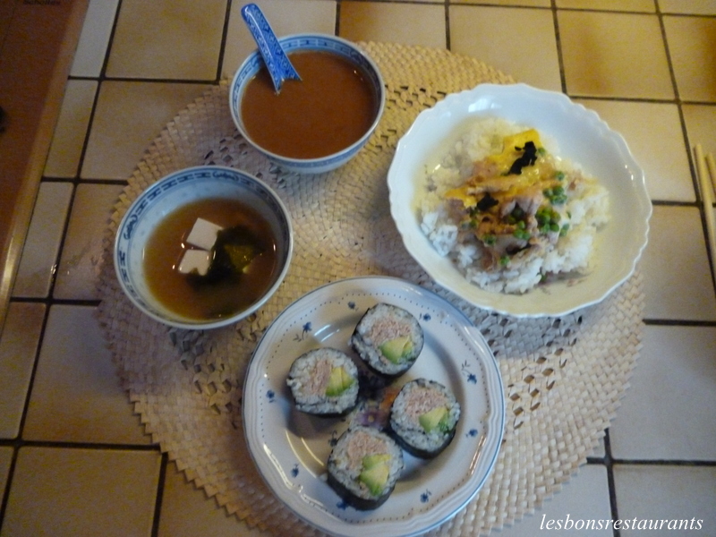 Ce menu est composé des dernières recettes axées sur la cuisine japonaise que nous découvrons peu à peu et que nous adorons! Ce menu est composé, en premier lieu, d'une soupe miso(voir la recette sur ce lien).