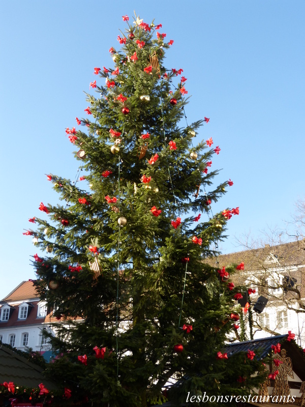 Le sapin, majestueux, trône au coeur de la vieille ville, place St. Johanner Markt.
