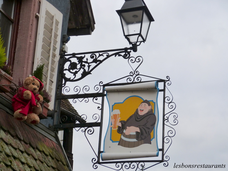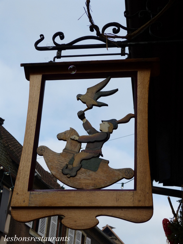 Ribeauvillé, commune située en Alsace, est une ville typique qui possède un beau patrimoine...les enseignes en font partie! Vous pouvez voir et revoir notre balade à Ribeauvillé depuis le début en cliquant sur ce lien. Cliquez sur les photos pour les agrandir! Il n'y a qu'à lever les yeux....