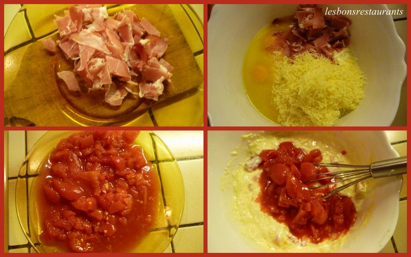 Incorporez le jambon et les tomates.