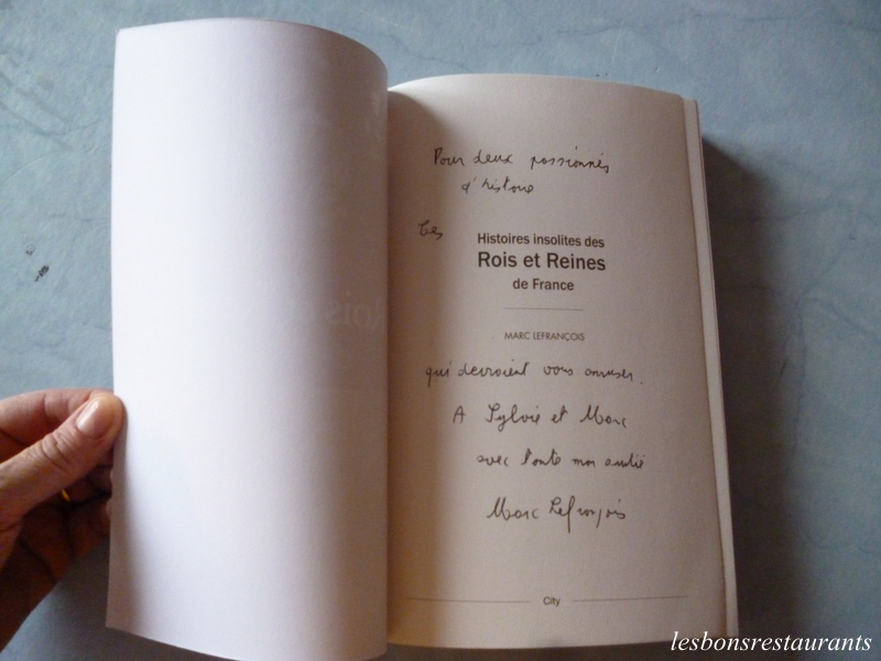 Nous avons eu l'heureuse surprise de figurer parmi les gagnants de ce concours. Des livres étaient en jeu, Marc et moi avons choisi "Histoires insolites des rois et reines de France", un livre écrit par Marc Lefrançois. Marc Lefrançois nous a écrit une très jolie dédicace sur la page de garde!