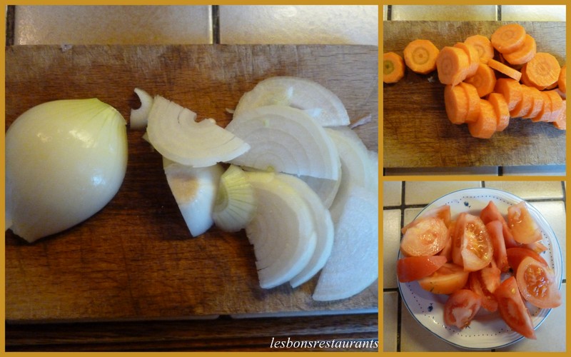 Pelez, lavez et coupez l'oignon et les carottes en julienne.