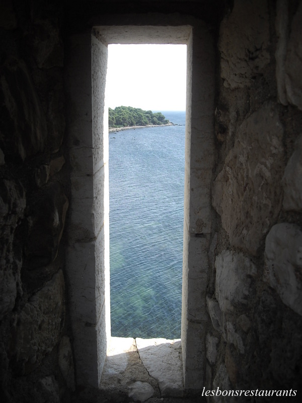 Nous vous avons emmenés, hier, sur le sentier qui débouche sur les ruines du premier monastère édifié sur l'île...Le monastère fortifié! Le voyage continue...Visitons ce monastère! Vous pouvez voir ou revoir cette série depuis le début sur ce lien. Cliquez sur les photos pour les agrandir! Du haut de la plateforme, la vue est magnifique sur la côte de Lérins...mais aussi sur l'intérieur du monastère.