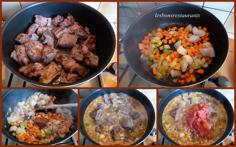 Pelez, lavez et émincez l'oignon. Pelez, lavez et hachez finement l'ail. Prenez votre wok et faites-y revenir la viande découpée en morceau dans un filet d'huile de sésame. Lorsqu'elle est bien revenue, réservez-la. Remplacez-la par le poireau, les carottes, les navets, l'oignon et l'ail. Faites revenir ces légumes tout en remuant pendant 5 minutes. Ajoutez le curry et remuez. Ajoutez le vin blanc et le bouillon. Enfin remettez la viande et finissez par les tomates pelées. Laissez cuire 90 minutes sur feu doux.