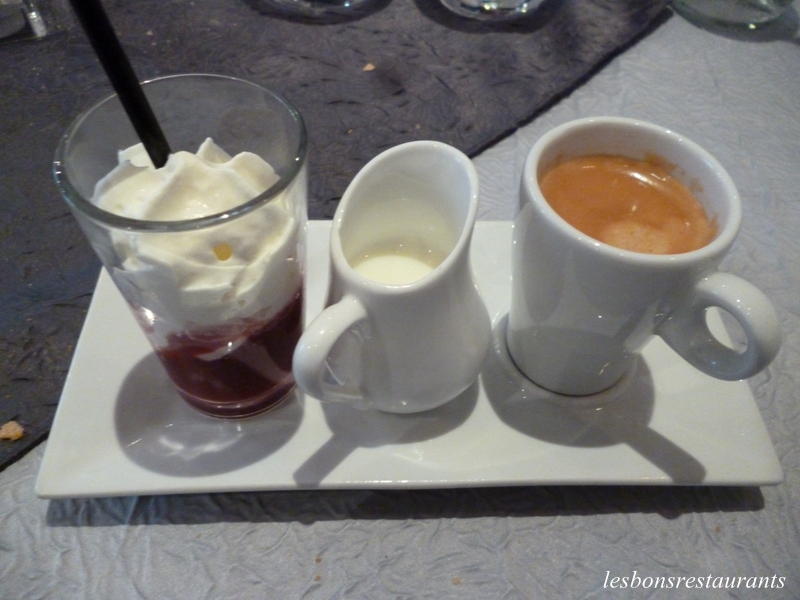 Le café est accompagné de sa petite cruche de lait et surtout de son liègeois de fruits rouges!