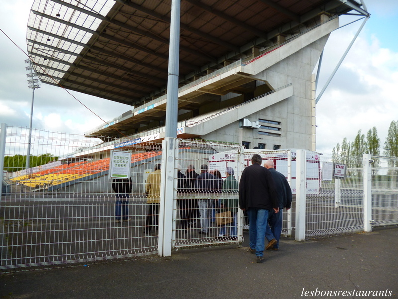 Dans cette tribune se trouvent les vestiaires et un local pour la presse écrite et orale. Nous longeons la tribune des Ultras!